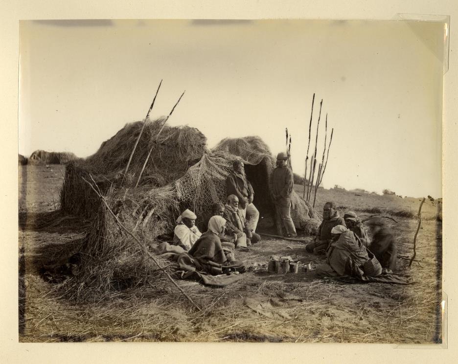 Vroege stadsgezichten en landschappen in Noord- en Zuid- Australië, Tasmanië en New South Wales (circa 1870-1879) Fotograaf mogelijk J. W. Ploos van Amstel Een groep Aborigines bij hun hutten, in Encounter Bay, ten zuiden van Adelaide. ‘De oorspronkelijke bewoners van het Australisch continent zijn de Aborigines of Aboriginals. Hier zit een groep bij hun hutten, wurlies genaamd, in Encounter Bay, ten zuiden van Adelaide. Deze foto behoort tot een album dat koning Willem III werd aangeboden via de Nederlandse koopman en consul J.W. Ploos van Amstel, namens "den Heer J. Acraman". De schenker was vrijwel zeker de prominente zakenman John Acraman in Adelaide. Deze Engelsman speelde een belangrijke rol in het zakenleven én bij de introductie van het voetbal in Australië.‘