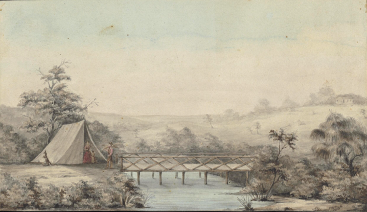 Settlers camping, 1855 J.W.P.v.A J. W. Ploos van Amstel, NK7069 1855 1 watercolour ; 12 x 20.8 cm. |